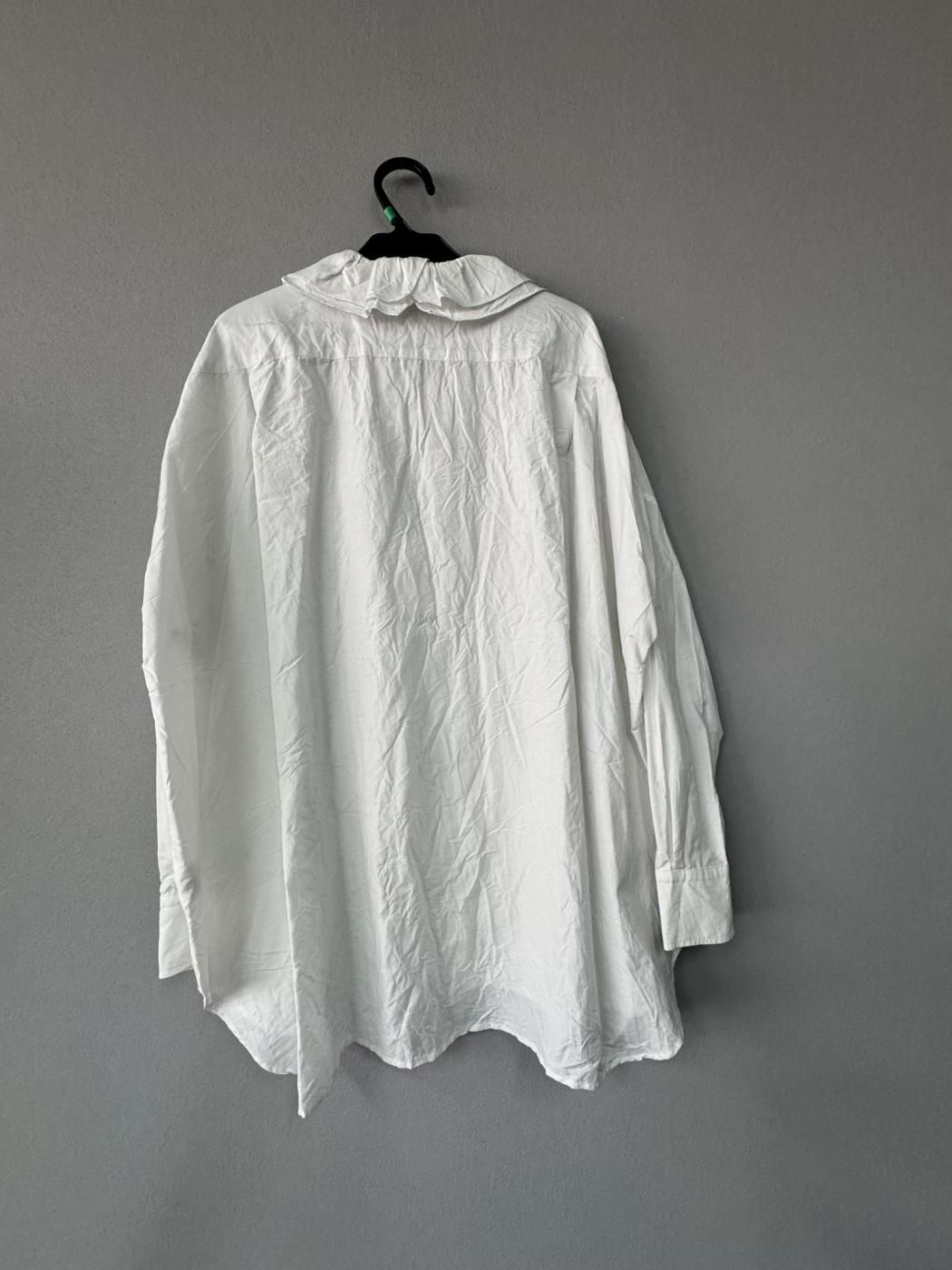 2025AW toujours cotton.silk faille cloth ruffle collar baggy shirt smoke white 2号