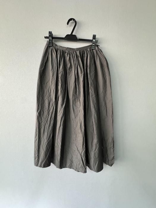 2025AW toujours cotton.silk faille cloth random pleatedmaxi skirt charcoal brown2号