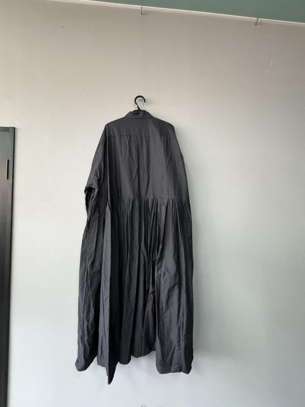 2025AW toujours cotton.silk faille cloth random pleated baggy shirt dress black navy 2号