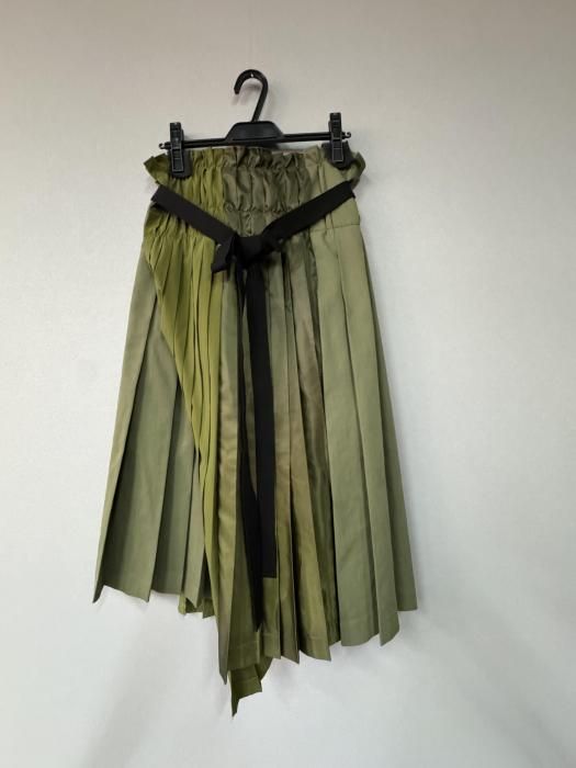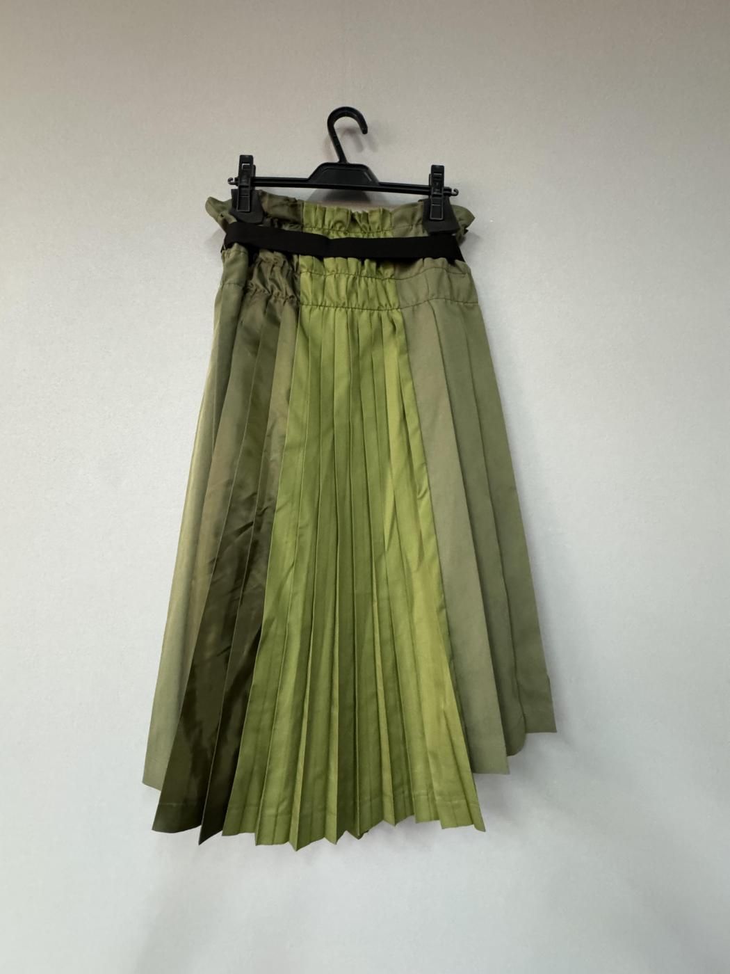 2025AW エステルタフタMIX プリーツスカート カーキS