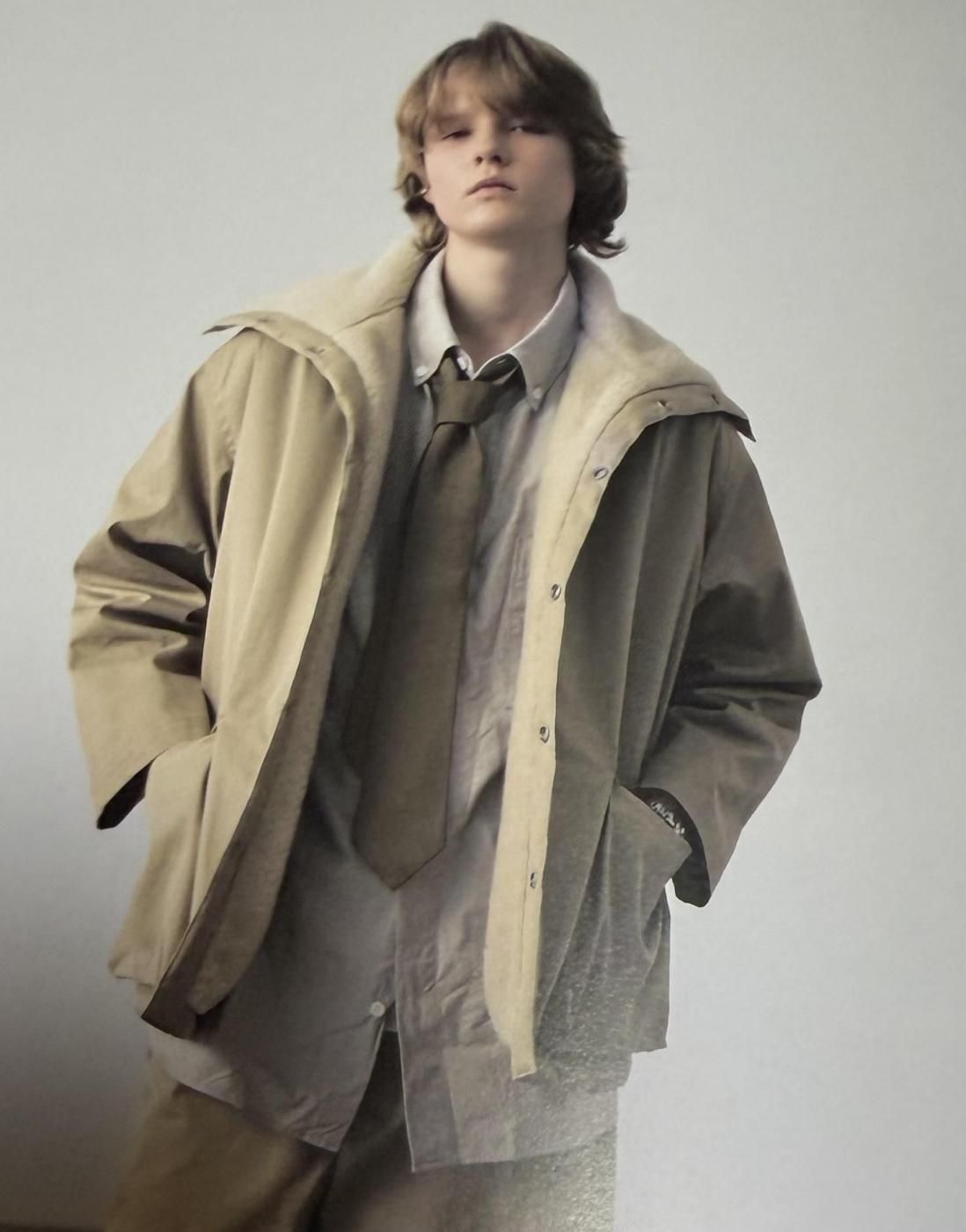 2025AW toujours cotton solotex polyester chambray twill cloth lining boa high neck jaket khaki 2号